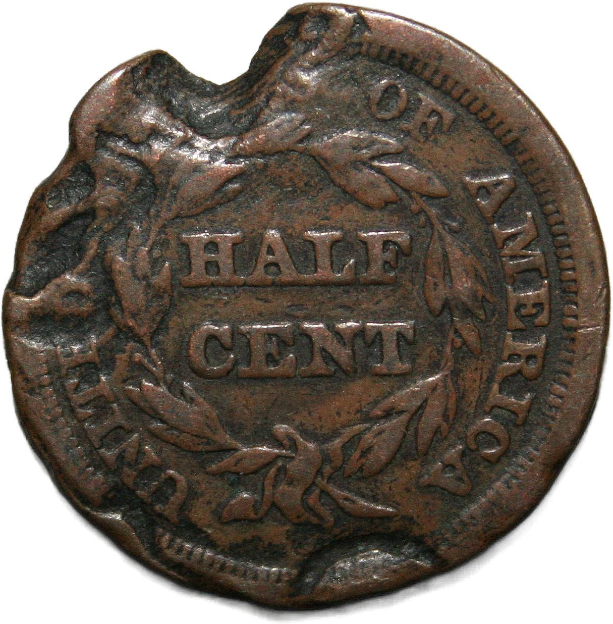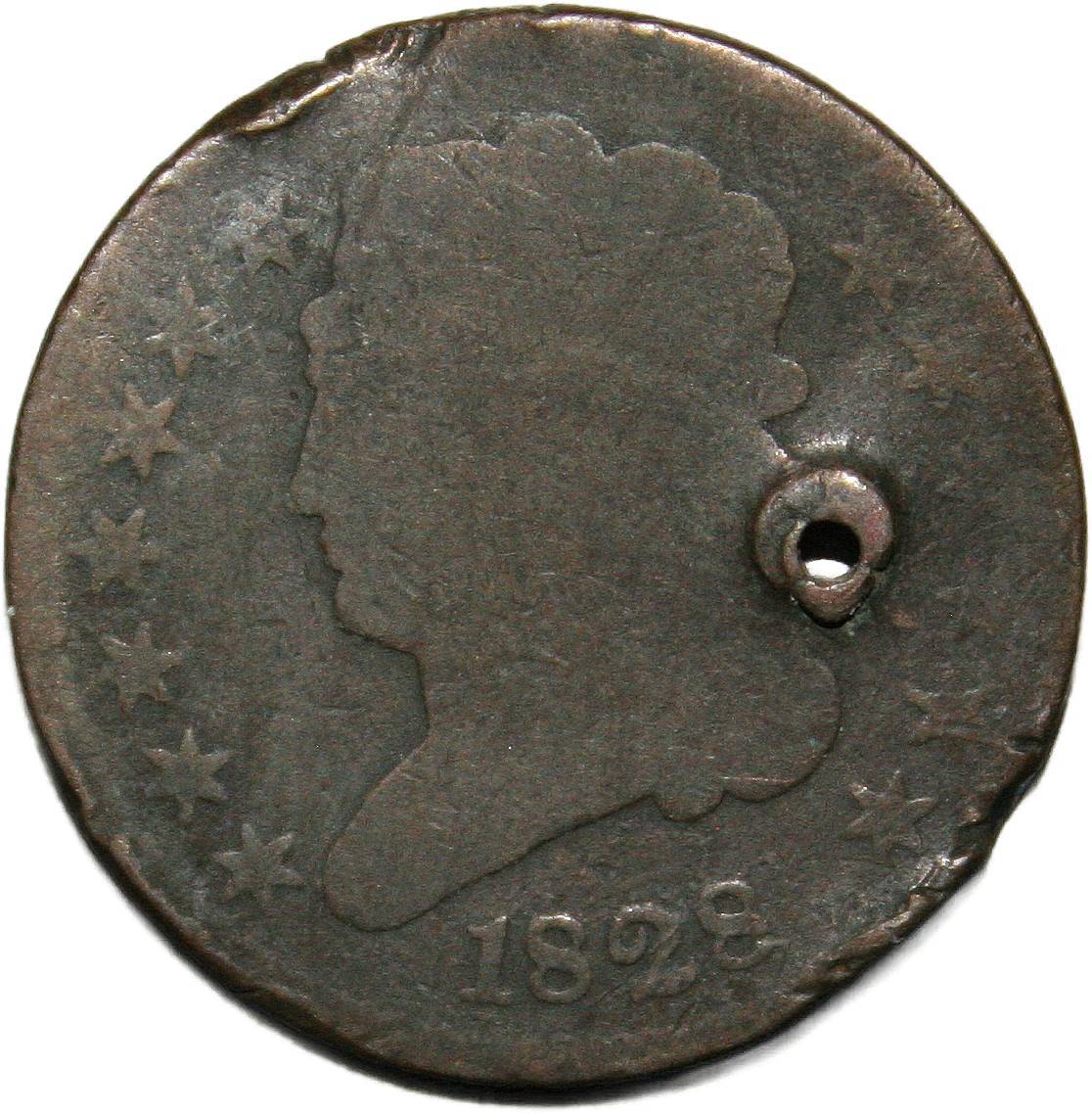 | United States ½ cent - 1828 KM# 41 ( 1809–1835 ) copper about good (holed, dents) June 2022 |