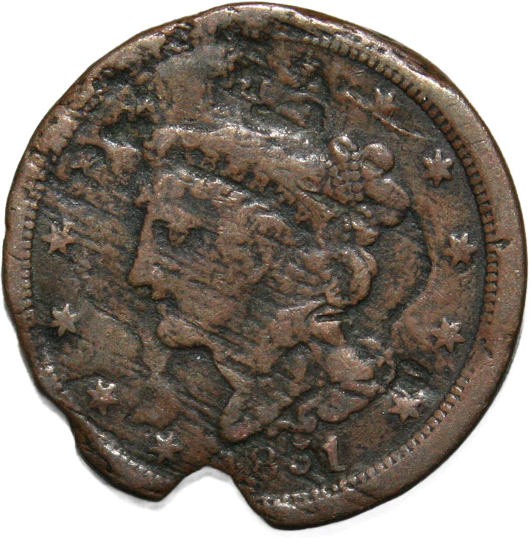 | United States ½ cent - 1851 KM# 70 ( 1849–1857 ) copper fine (damage) February 2023 |