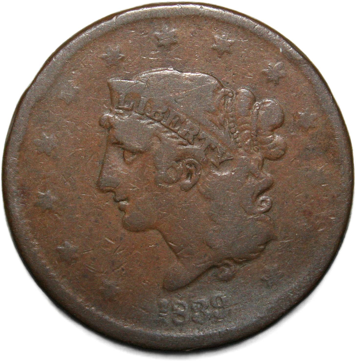 | United States 1 cent - 1839 KM# 45.2 ( 1835–1839 ) copper very good June 2022 |