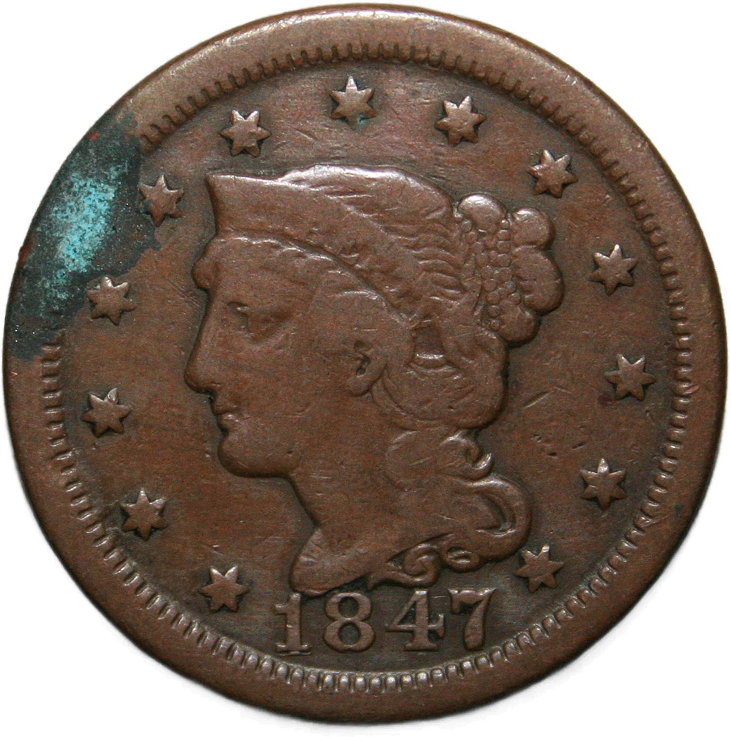 | United States 1 cent - 1847 KM# 67 ( 1839–1857 ) copper fine February 2022 → May 2022 |