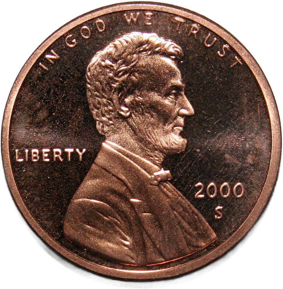 | United States 1 cent - 2000-S KM# 201b ( 1983–2008 ) copper plated zinc proof before 2020 |