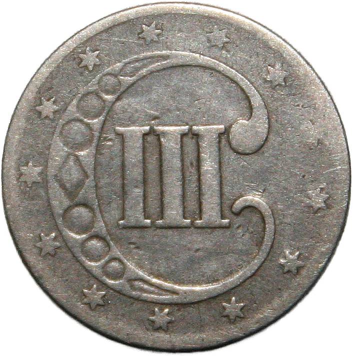 | United States 3 cents - 1857 KM# 80 ( 1854–1858 ) 90% silver - 0.0206ozt Ag fine (damage) October 2022 → January 2025 |