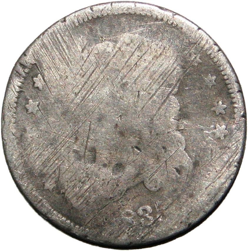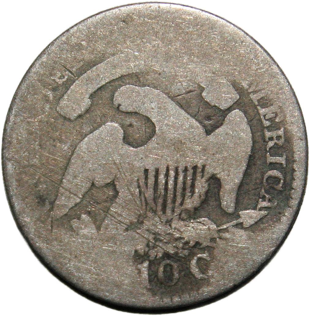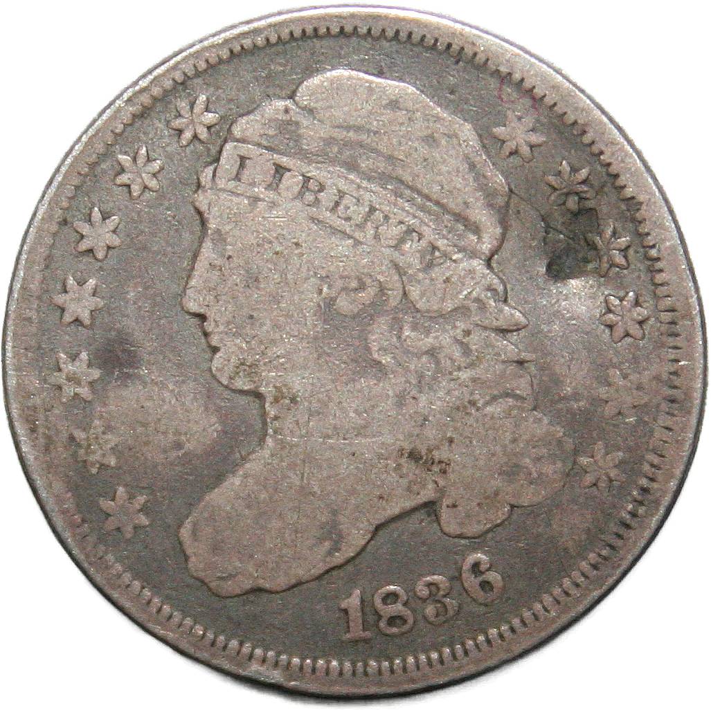 | United States 10 cents - 1836 KM# 48 ( 1828–1837 ) 89.24% silver - 0.0719ozt Ag very good (dents) January 2023 |