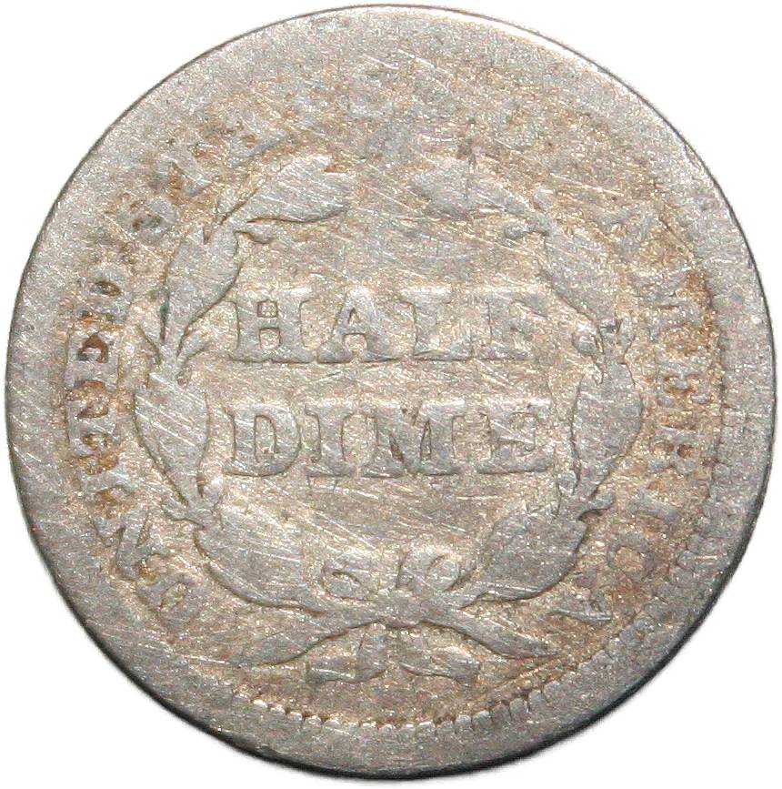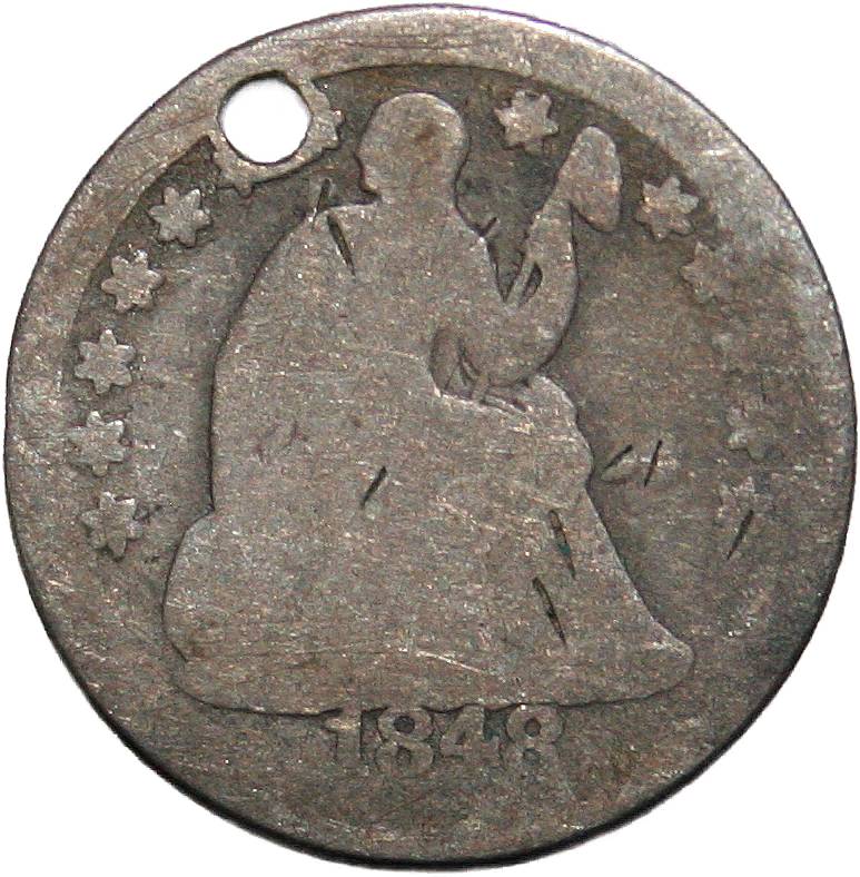 | United States ½ dime - 1848 KM# 62.2 ( 1840–1853 ) 90% silver - 0.0313ozt Ag poor (holed) October 2022 |