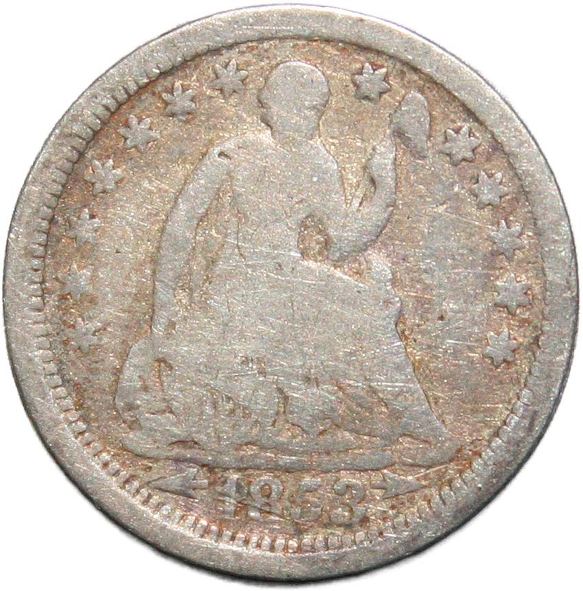 | United States ½ dime - 1853 KM# 76 ( 1853–1855 ) 90% silver - 0.0333ozt Ag good July 2023 |
