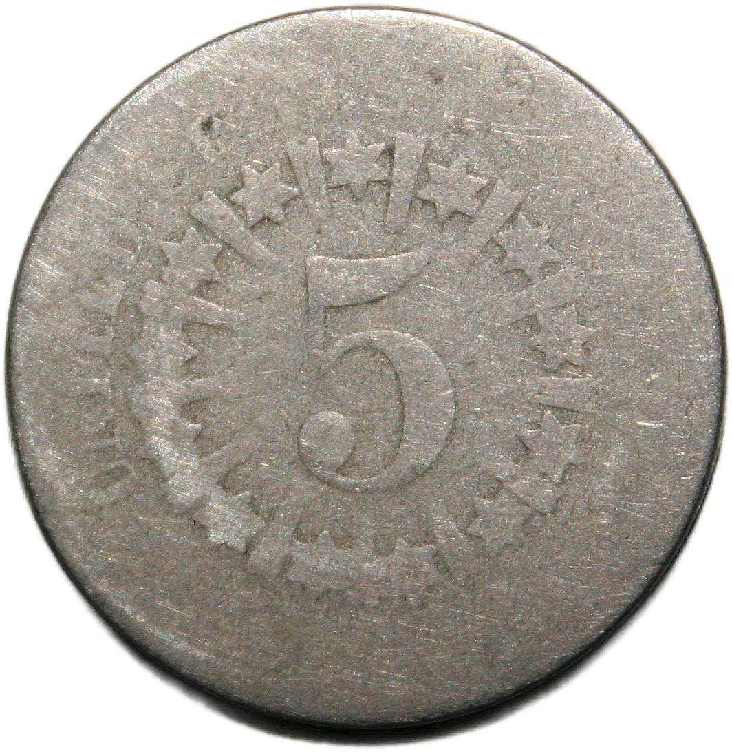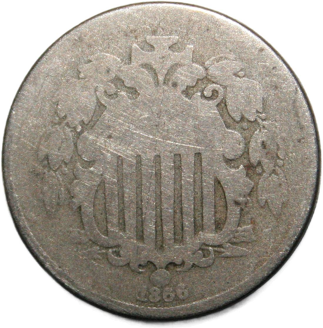 | United States 5 cents - 1866 KM# 96 ( 1866–1867 ) cupronickel about good April 2022 |