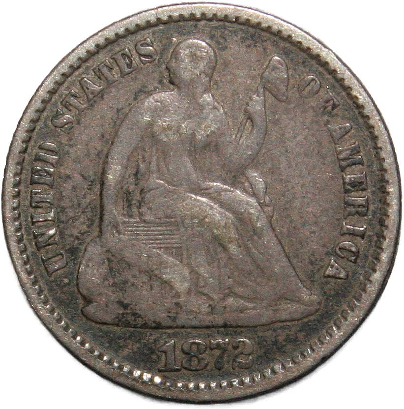 | United States ½ dime - 1872 KM# 91 ( 1860–1873 ) 90% silver - 0.0347ozt Ag very good January 2023 |