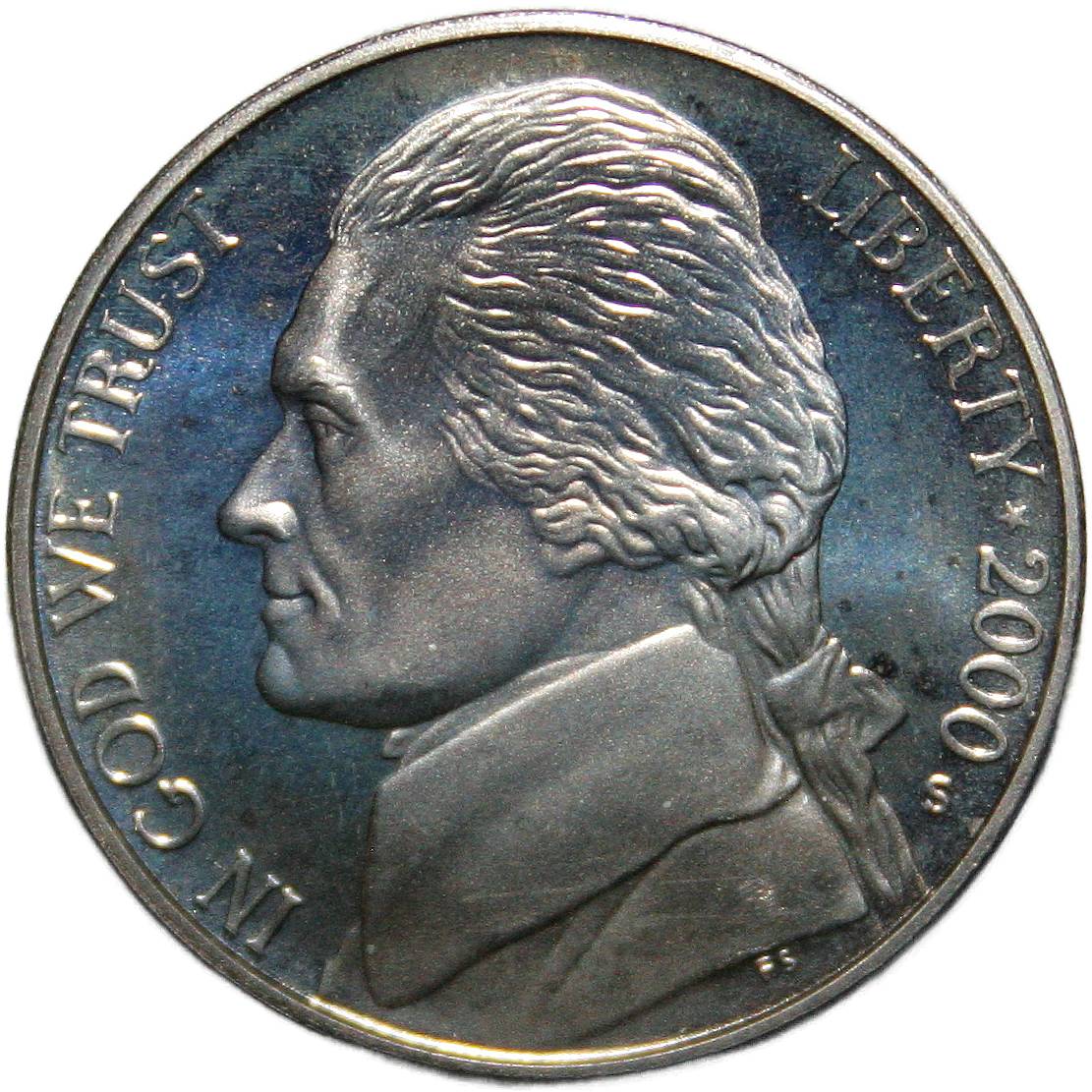 | United States 5 cents - 2000-S KM# A192 ( 1946–2003 ) cupronickel proof before 2020 |