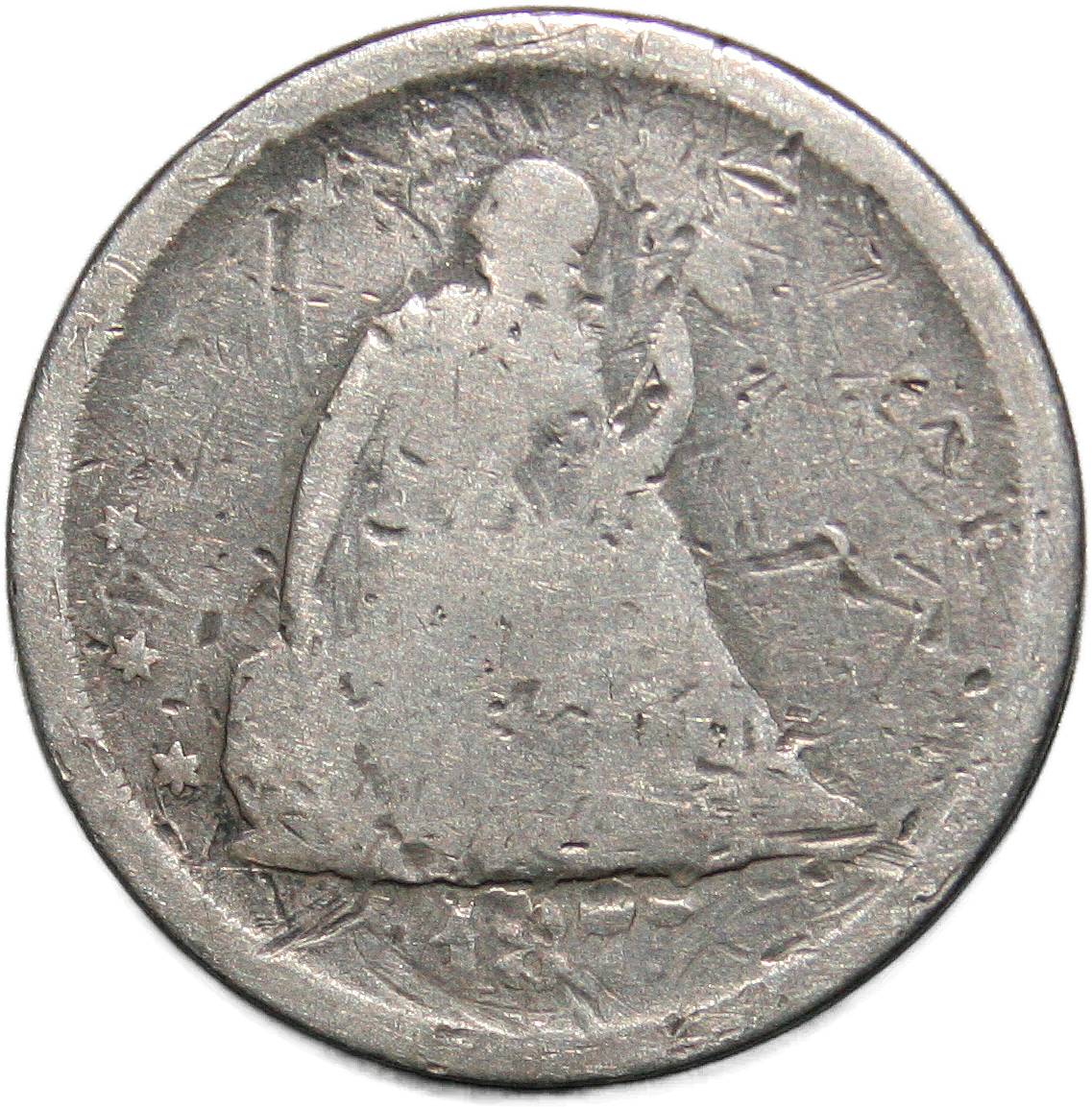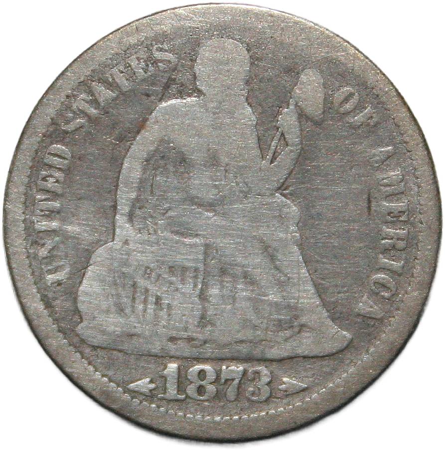 | United States 1 dime - 1873 KM# 105 ( 1873–1874 ) 90% silver - 0.0663ozt Ag very good July 2023 → October 2024 |