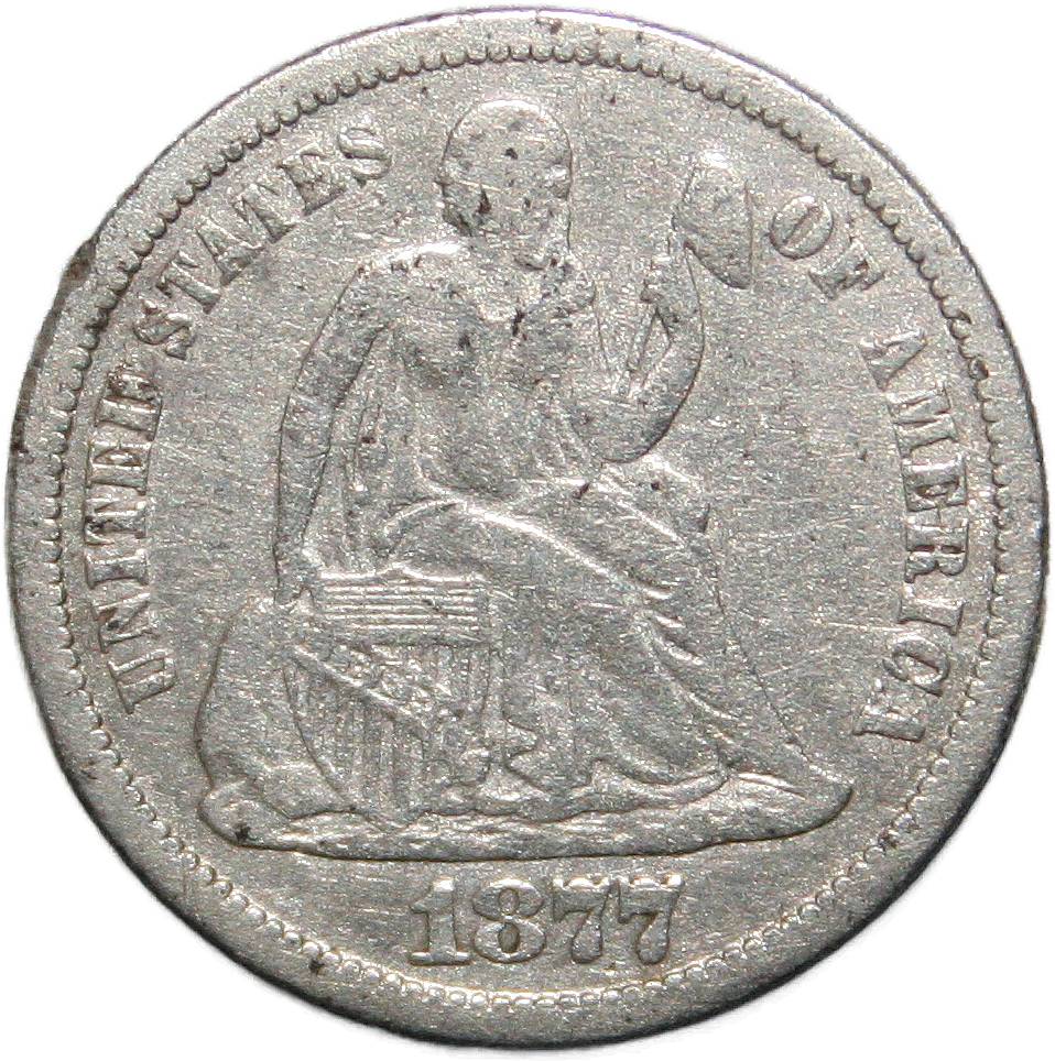 | United States 1 dime - 1877-CC KM# A92 ( 1875–1891 ) 90% silver - 0.0698ozt Ag fine July 2022 → June 2023 |