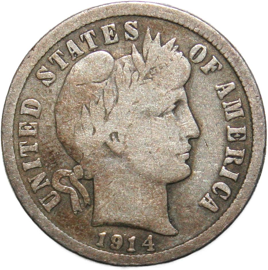 | United States 1 dime - 1914-D KM# 113 ( 1892–1916 ) 90% silver - 0.0687ozt Ag very good before 2020 → March 2023 |