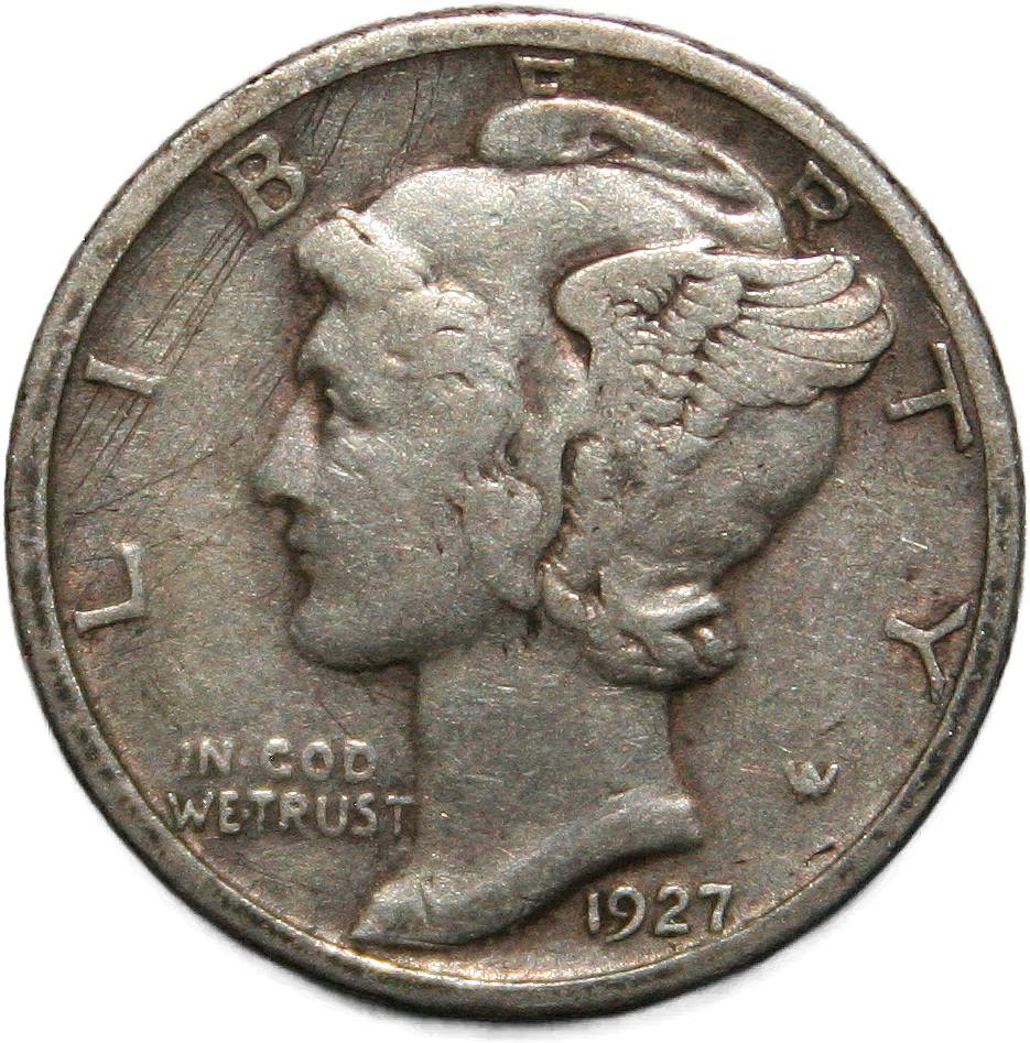 | United States 1 dime - 1927 KM# 140 ( 1916–1945 ) 90% silver - 0.0722ozt Ag fine January 2020 → January 2023 |