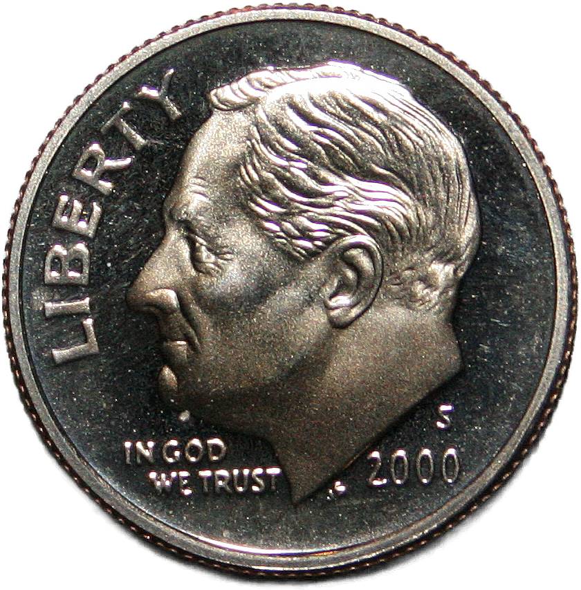 | United States 1 dime - 2000-S KM# 195a ( 1965–2025 ) cupronickel clad copper proof before 2020 |