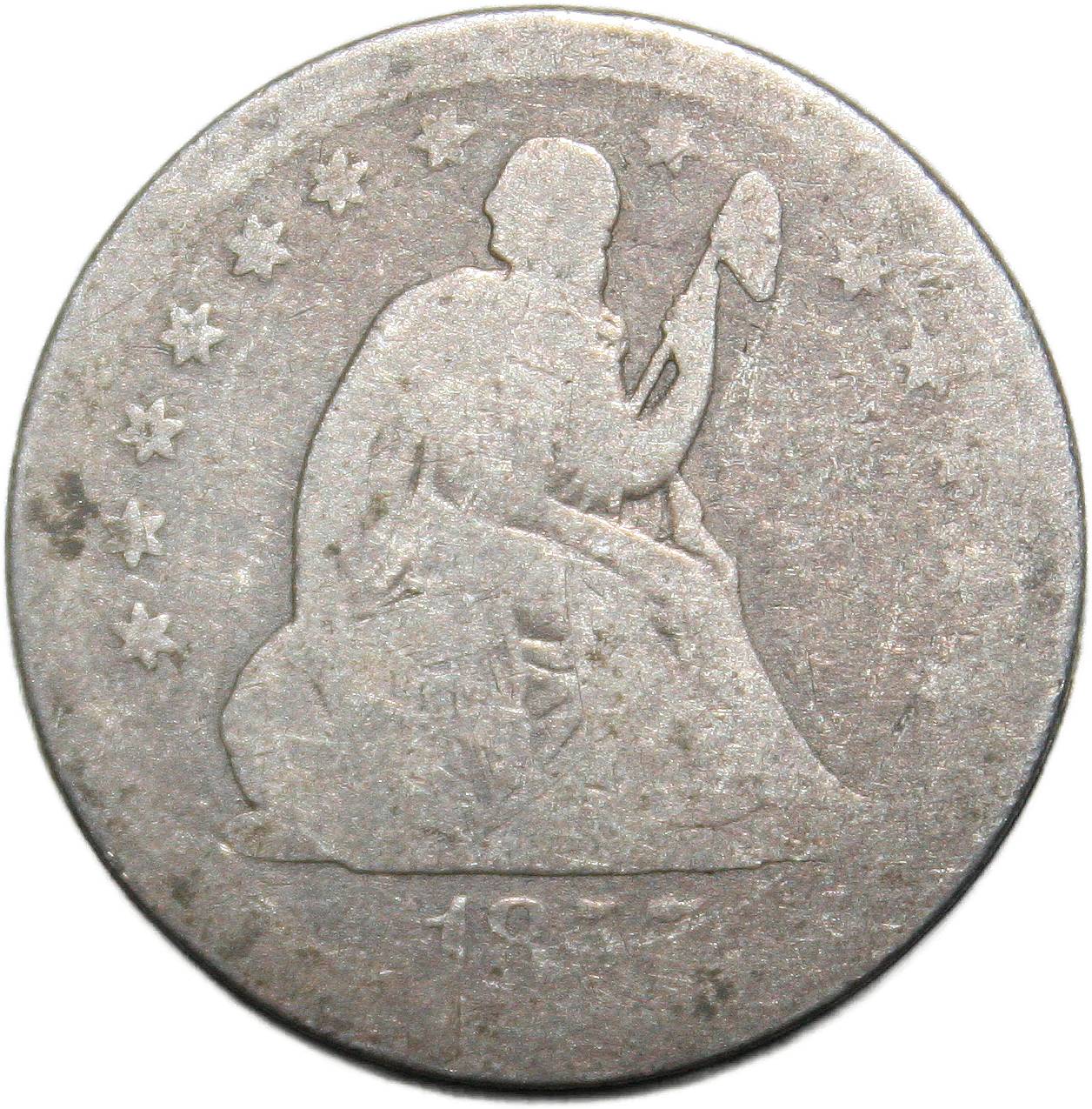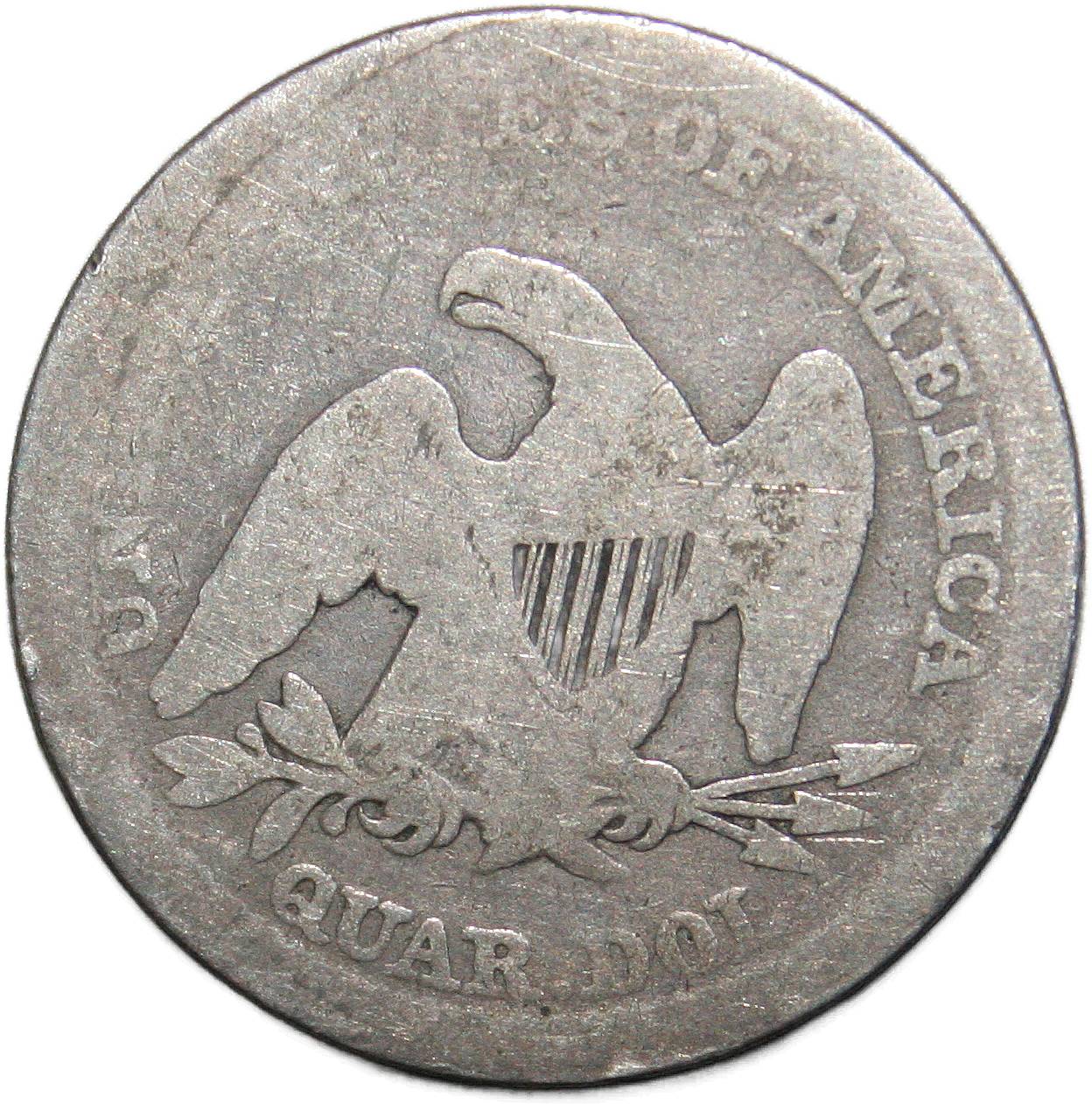 | United States ¼ dollar - 1857 KM# A64.2 ( 1856–1865 ) 90% silver - 0.1668ozt Ag about good June 2024 |