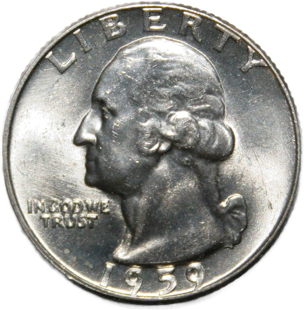 | United States ¼ dollar - 1959-D KM# 164 ( 1932–1964 ) 90% silver - 0.1813ozt Ag uncirculated June 2020 → April 2022 |