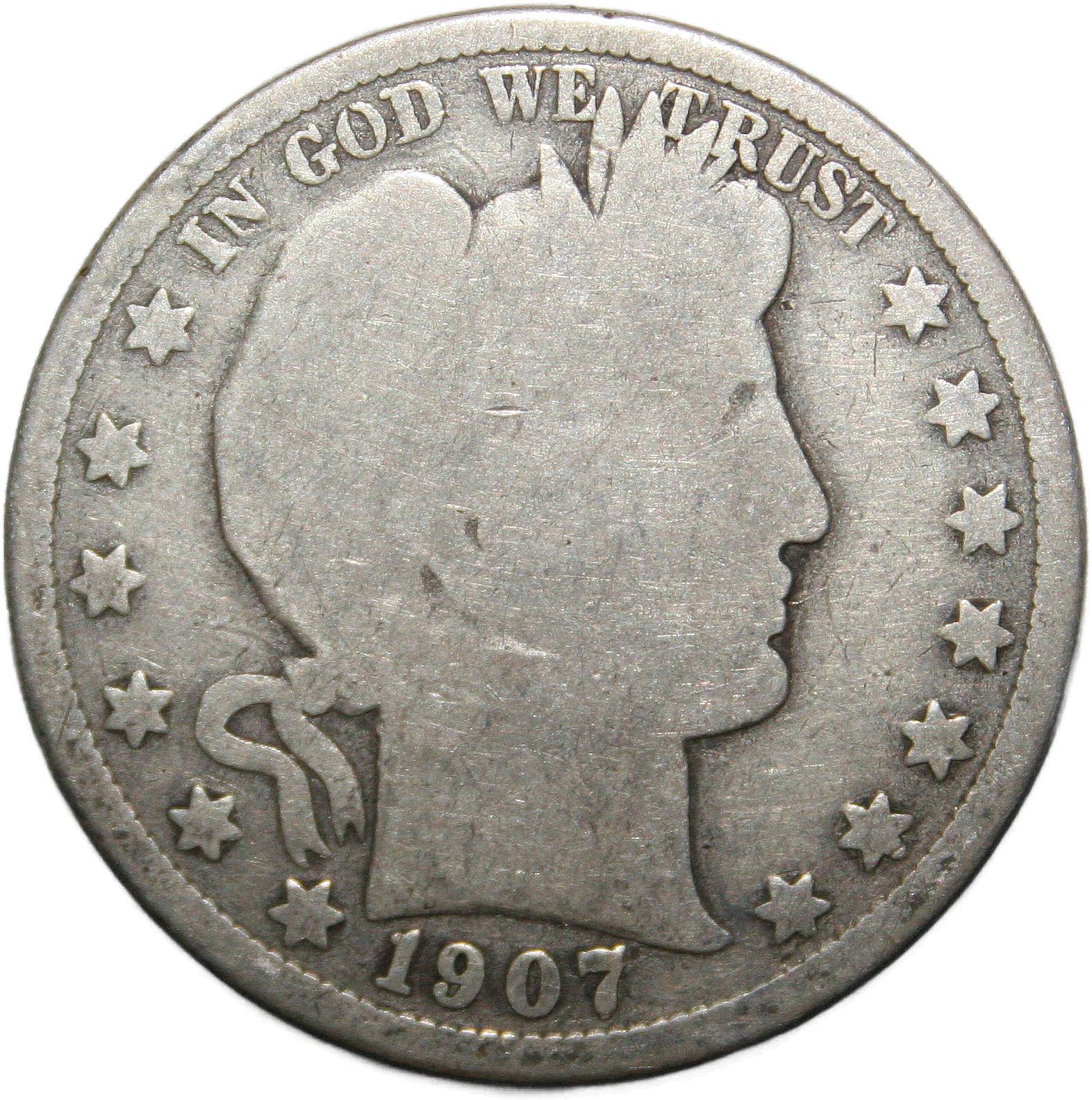 | United States ½ dollar - 1907-D KM# 116 ( 1892–1915 ) 90% silver - 0.3320ozt Ag good January 2023 |