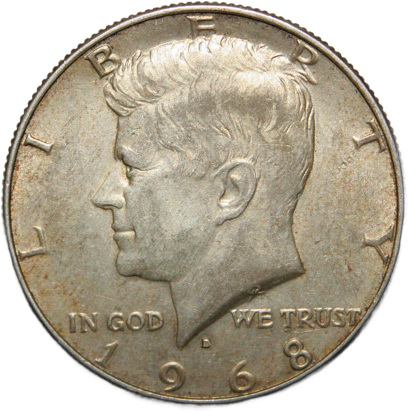 | United States ½ dollar - 1968-D KM# 202a ( 1965–1969 ) 40% silver - 0.1466ozt Ag about uncirculated April 2022 → January 2023 |