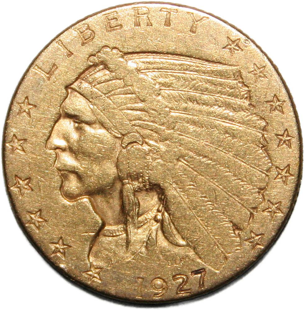 | United States 2½ dollars - 1927 KM# 128 ( 1908–1929 ) 90% gold - 0.1194ozt Au extremely fine April 2022 → March 2023 |